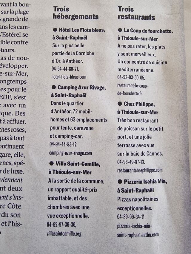 page 68 la Corniche d'or confidentielle et ces trois hébergements et restaurants plébiscités