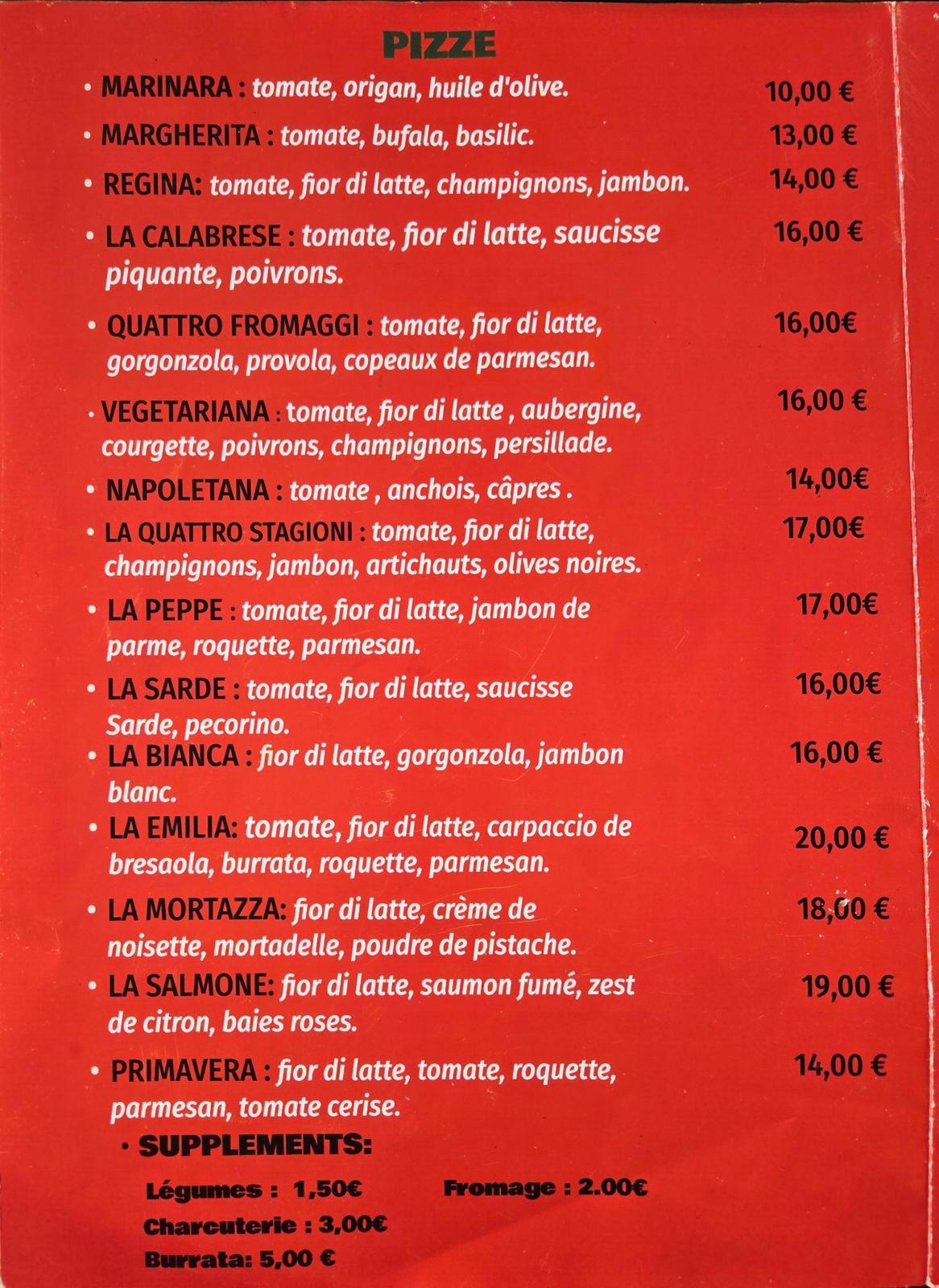 Pas envie d'une pizza? une sélection de salades, de carpaccios, de plateaux de charcuteries, fromages ou burrata satisferont vos envies et émerveillerons vos papilles.