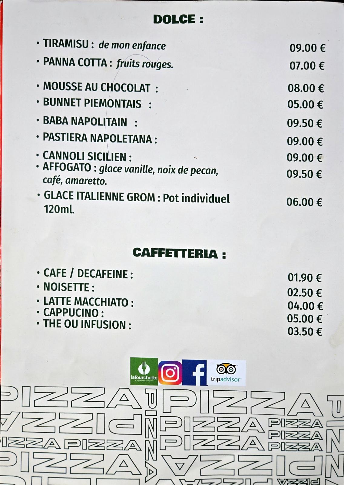 Et quoi de mieux que de terminer un bon repas dans la bonne humeur par l'un de nos délicieux desserts! de la Sicile à Naples sans oublier nôtre dessert signature le tiramisu de mon enfance.